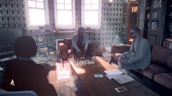 Soon after, a man is shown sitting in a chair smoking marijuana in the first circa 10 minutes, described as being for medicinal use, and legal in Boston (the sequence of smoking is not controlled by the player). There is a bar in the game, where alcohol is served, and the investigation (in the past) centers around a murder case – but the violence is rarely realistic. When violent acts are shown in the adventure sections, it’s often in service of the story – and the violent acts are often more alluded to (shown with phantom figures or camera angles disguising the details).
