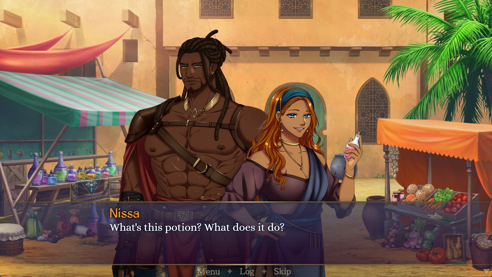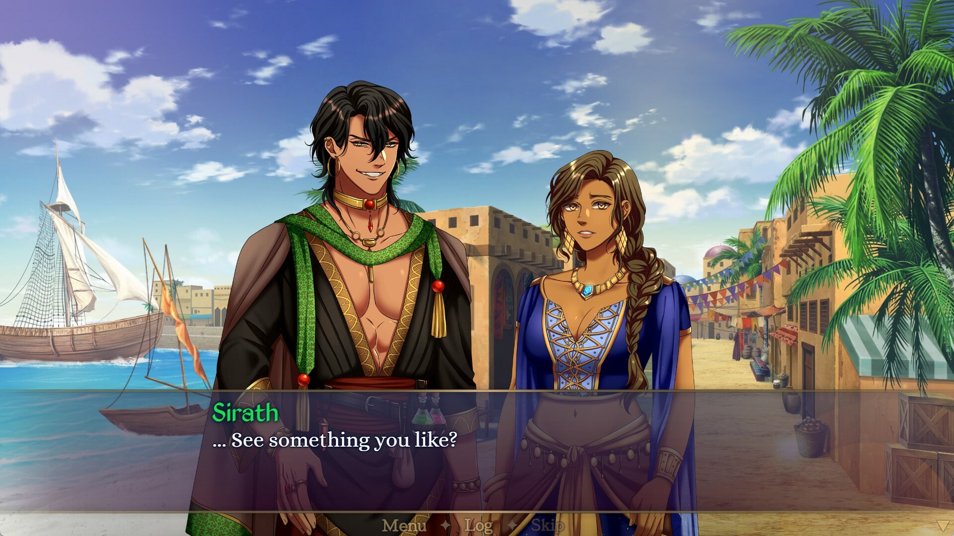 In this otome visual novel, you play as the young witch Shar, who was invited to live with the famous witch Eniri S’yke. Shar’s host keeps demonic prisoners beneath her house and needs help controlling and using them. As Shar learns more of the house’s secrets, she can build a relationship with her host’s brother… or one of her prisoners.Shar – A young witch from a tropical village in El’shei. She specializes in benevolent magic, like her mother, the Oracle of Chtaz. Shar attracts the attention of a more powerful and famous witch, and receives an invitation to become her assistant. Eniri – A witch respected in the big city and beyond, she is Shar’s host and the mistress of her mansion. She can’t help herself from conducting dangerous experiments. Strict and merciless toward those she sees as inferior, she will try to teach Shar her views about life, social roles and magic. Esmius – A demonspawn trapped by Eniri and turned into her unwilling servant. He appears to take his imprisonment well, even to the point of joking and teasing others. It feels like he’s hiding a deep pain inside, but Shar can’t figure out which part of him is a lie. Sirath – The younger brother of the great witch Eniri. As a male, he can’t continue the family tradition of witchcraft, but Eniri still has a use for him in the family business – mixing potions. Sirath envies his sister and her witch associates, and will keep a close eye on Shar when she joins the household. Nissa – A girl that Shar meets in the marketplace of the big city, Nissa acts like a bit of a rogue. She is quick to decide she wants to be Shar’s friend. She will show Shar around the city, share the local gossip, and want to learn everyone’s juicy secrets. Zhan – Eniri’s family friend, he is a smith who has joined in on the business of selling magic trinkets. He will be there to support Shar as she adapts to her new home. He is unaware of the shady practices going on in his old friend’s basement.