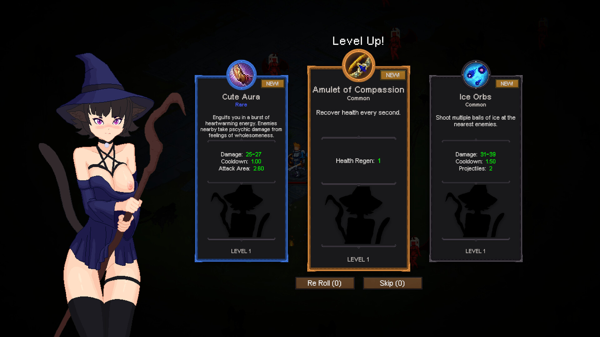 Harem of Gods is an action roguelite that sees you, the unlikely hero, face off against the hordes of evil with help from beautiful gods. Plan your item builds, progress your relationships, and massacre the enemies that stand against you. As you conquer evil, you form a harem with the gods. The more justice you serve, the more they want to give you special lewd rewards An ancient evil has decimated the overworld. But it’s not too late to go back. Our hero has been given the curse of undying. His mistake unleashed the spirit of hell that now ravages the earth. Every run you dedicate your skills towards one of the gods. Stay alive, slaughter the hordes, and they’ll show you their appreciation by fulfilling your, and their, lewdest desires. Among a variety of gods with many breath-taking animated sex scenes and cute pixel art, you’re sure to find what you want! Get lost in a rich harem fantasy, spark a kindling relationship with the lewd gods as you fight to restore the world.