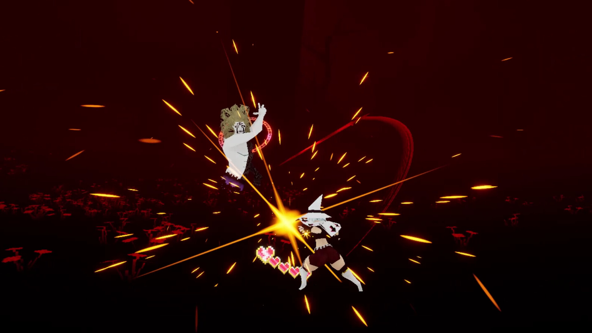 Explore the twisting passages and alleys of the Halls, a liminal manifestation of the subconscious of many. After clicking a shady looking hyperlink and filling out a survey, you find yourself in a non-sensical place where gravity implies no “up” or “down.” The unfortunate residents encourage you to find your way out by facing your regrets and getting stronger. Gain abilities, jam with foes and conquer the Halls! Walk on walls, use your gravity beam and other abilities you unlock to traverse the Halls how you please. Solve puzzles! Test your wit with perplexing and disorienting challenges. Explore a cute low-poly environment with retro-inspired pixel graphics. Make friends with the cast of characters in the same situation as you! Help them out with tasks, and they might just reward you with items and lore. Fight a plethora of enemies to the beat of unique soundtracks! Time your parries, dodges and jumps to the beat of the song! An expansive list of scores dictate tempo and feel of the combat! Almost every sound effect, from abilities, to dialogue, to combat sounds are in tune with the melody!