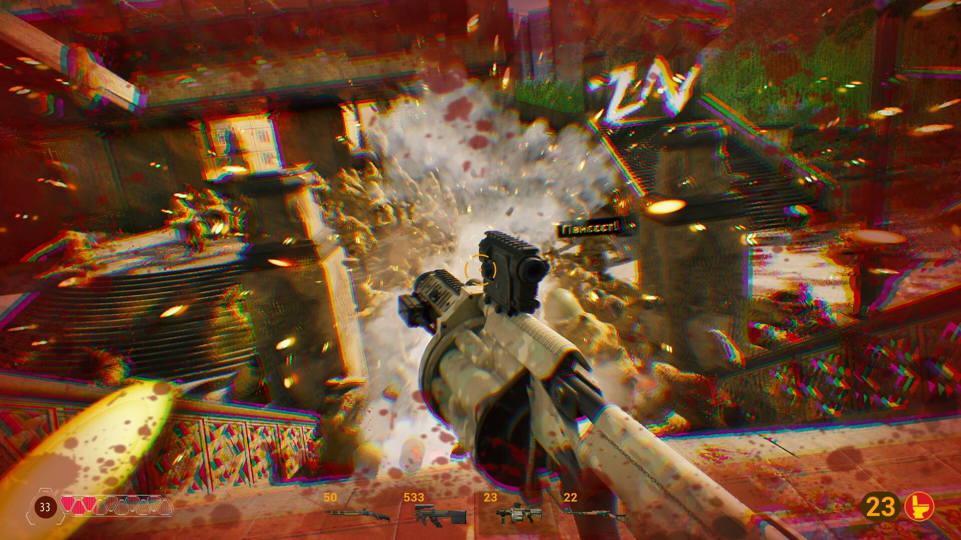 A surprisingly decent shooter that doesn’t waste time on warming you up. You will immediately be swarmed with hordes of subhumans. It takes some things out of Doom Eternal’s playbook, as in you have to interact with enemies in a specific way to get your resources back. Here, this means pushing ♥♥♥♥ into your enemies. You kick a plastic chair into a horde of orks, they get dismembered (somehow), you get your health and ammo back. It works fine in the beginning of an arena when things are still in their place, but after a few waves, finding stuff to throw becomes really tedious and breaks the flow of combat.