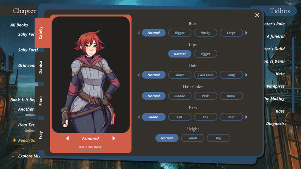 Adventures: There are two adventures, which are large interconnected stories. Adventures have their own internal rules that control how things proceed. Explore the wilds of Downturn to find out what happened, but conserve resources to recover after fights. Save Sandy Coast before it’s overrun, but beware the politics of the area. Gallery: Complete character stories unlock erotic art. The art gallery chronicles your adventure. Things change: Character appearances might change throughout the story. Control the appearance of the characters manually if you end up with a look you don’t like.Update 18-08-2022: Returned to the game after almost two years – on the technical side, there are still flaws in the interface, text or graphics, but the game is almost completed and this is one of those games that you come to for 18+, but stay because of the story and characters. Highly recommend!