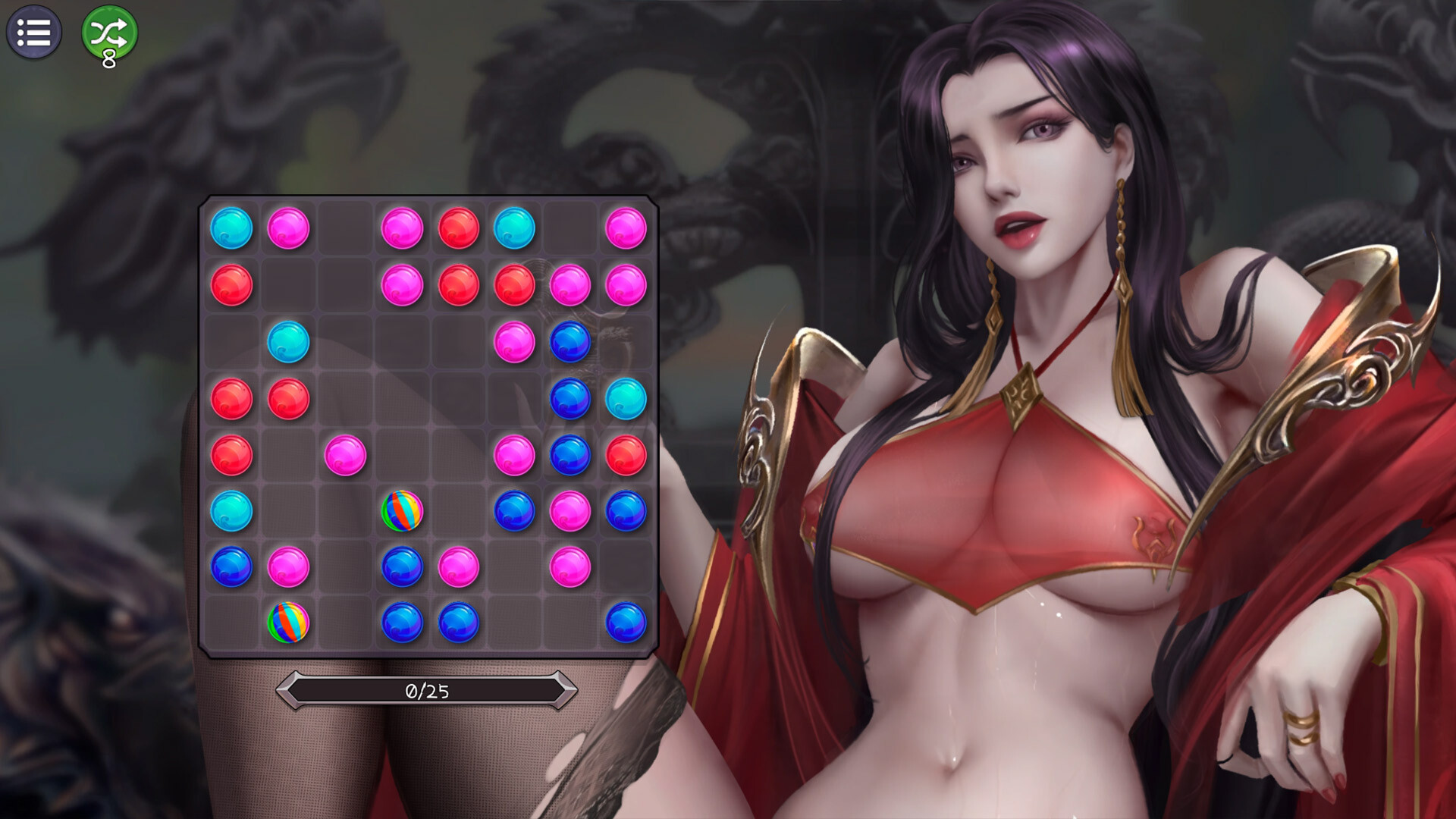 Your task is to assemble balls of the same color into horizontal, vertical or diagonal rows of at least five balls A ball is selected by clicking on it and moved there by clicking on an empty square However, there must be a path of empty fields between the selectected squares. Hello! We are Shmoops.games – a super small independent game dev studio passionate about making 18+ games! We will be very grateful if you support us by telling your friends about the game or by sending us your feedback. This will help us improve our games and start working on the next ones. Thank you!