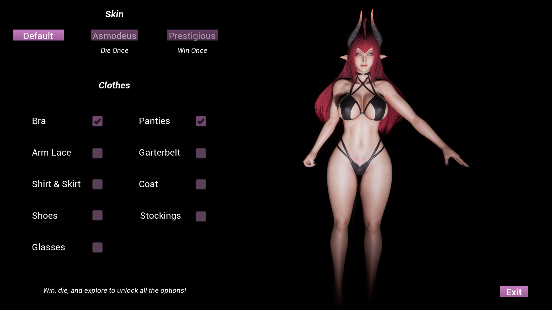 If you want to get out of here, you’re going to have to get creative. The door is locked up tighter than your captor, and you need to find all the keys and solve all the puzzles in order to open it back up. Your surrounding environment contains not only the items needed to escape, but also those necessary to fight back. Will you go the extra mile to collect them all and punish the demon? If you manage to find a way to halt the demon, you can begin the exorcism process. Choose from a variety of player-controlled animations where you can finally return the favor and make this succubus beg Customize