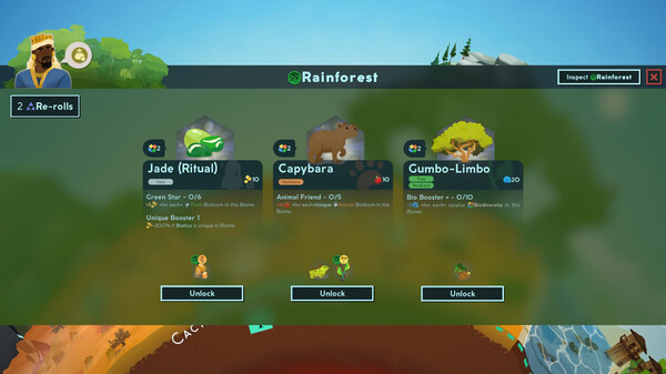 Utilize a roster of 6 powerful Giants, each with their own unique abilities over plants, animals and minerals that will allow you to create new biomes for humans to settle their villages. As you progress, gain inspiration to unlock more skills for your Giants, providing you with a diversity of choices.Terraform a variety of biomes, strategically build up different combinations of flora, fauna and materials specific to those environments. By experimenting, discover which combinations create the best synergies for the inhabitants’ needs and goals, leading you into exciting new eras of their existence.