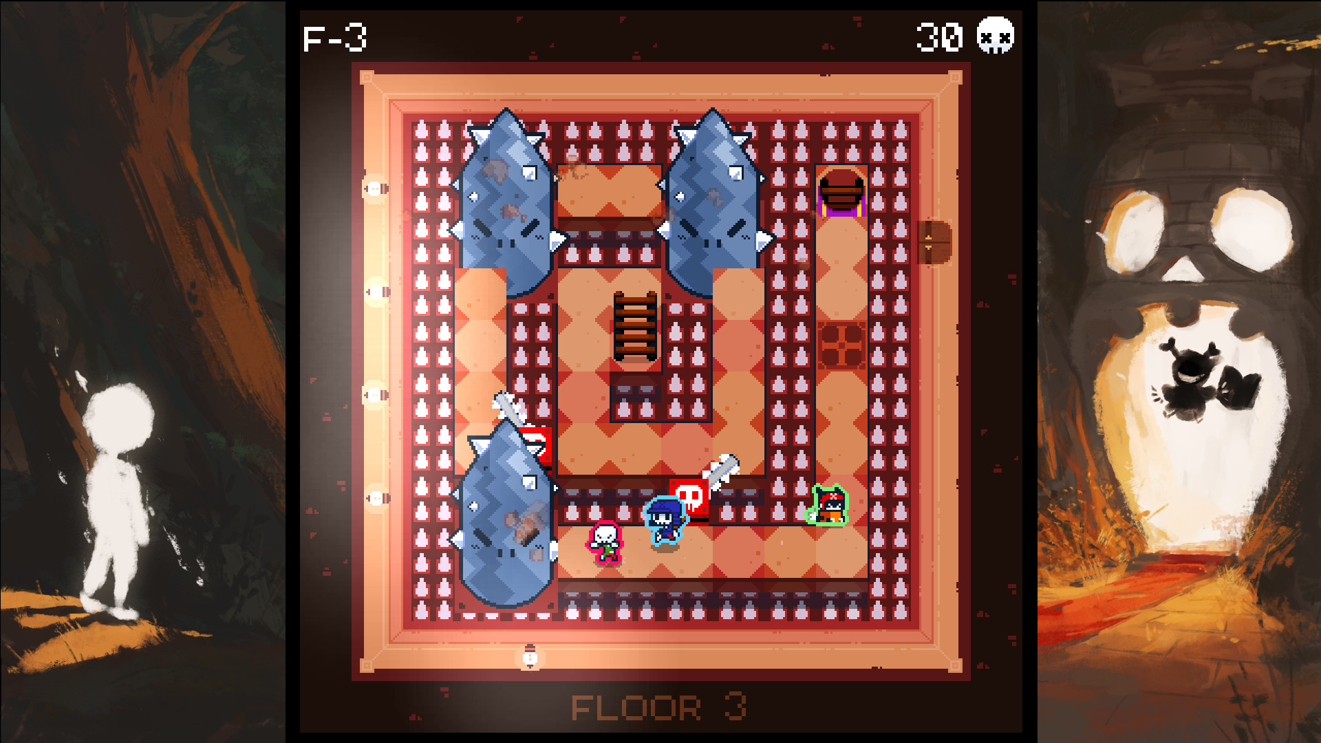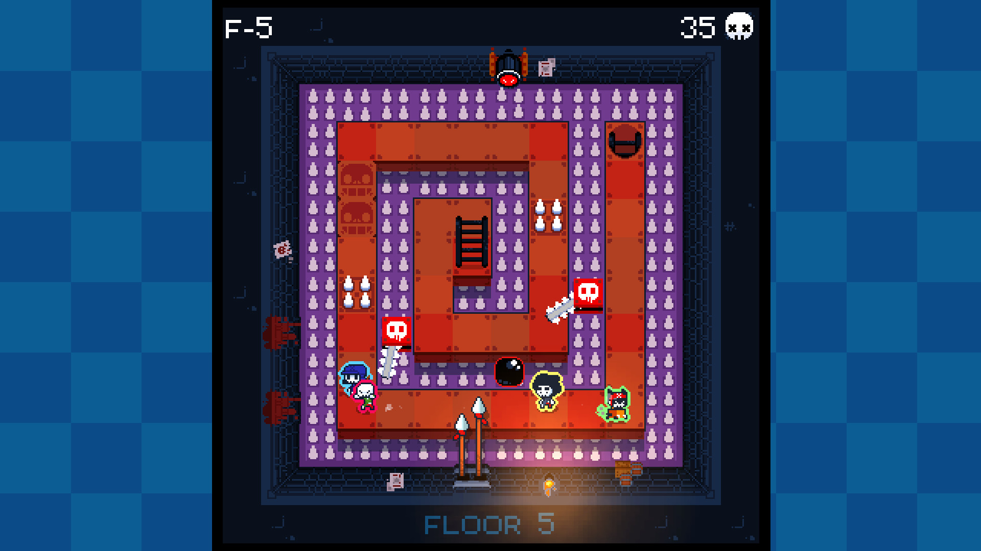 - Up to 4 players: Cooperate! Only one needs to complete the floor